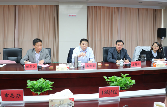 11月1日,公司党委常委、总会计师姜佩剑率公司党总支书记吉明明、经理姚登兵等一行赴泰兴市开展产学研合作工作。泰兴市人大常委会主任孙云、人大副主任兼黄桥经济开发区党工委书记耿元进、泰兴市委常委、副市长俞亚萍和副市长焦国庆、吴邵义参加活动。
