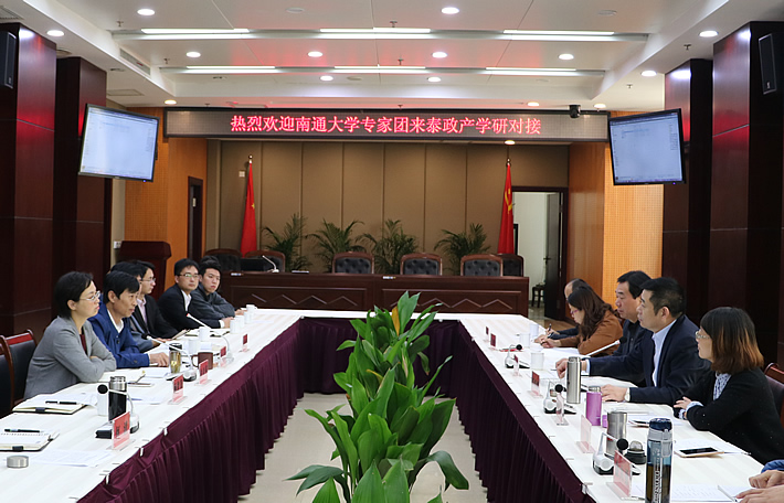 泰兴经济开发区致力于打造精细化工这一主要产业特色,被列为江苏省沿江开发十五个重点园区之一,初步形成了化工新材料、新能源、生物医药、油脂类食品加工、高端装备(海洋船舶工程)制造等产业链明晰的产业集群,呈现出“规模企业集聚、优势产品集中、主导产业集群”的发展格局。泰兴黄桥经济开发区是江苏省省级开发区,先后获得“国家国际科技合作基地”、“江苏省现代装备科技产业园”、“中国新型绿色纤维材料产业基地”等称号。泰兴经济开发区管委会主任吉勇详细介绍了园区的发展理念、发展目标、发展路径和远期规划并衷心希望公司专家教授充分发挥智囊团的作用,为泰兴社会经济发展提高智力支持。