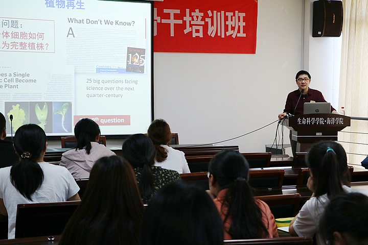 2018年6月1号下午,中国科学院上海生命科学研究院植物生理生态研究所研究员、博士生导师徐麟为我们做了题为 《植物组织培养:自然机制还是人为现象?》讲座报告。在报告中,徐麟研究员介绍了再生能力是植物在严酷的自然环境下能够保持长久生命力的重要原因之一,也被人们广泛运用于农业实践,特别是在植物组织培养中。近年来,他们利用模式植物的研究发现,很多植物的再生过程,其本质是植物干细胞的命运转变,其基础是干细胞的全能性与可塑性。对植物干细胞的认识,是人为操控植物再生与器官形态发生的关键,也是植物组织培养的基础。他从再生过程中的植物干细胞命运转变、再生的伤口信号以及干细胞与再生能力的演化历程三个方面做了精彩而详细的介绍。
