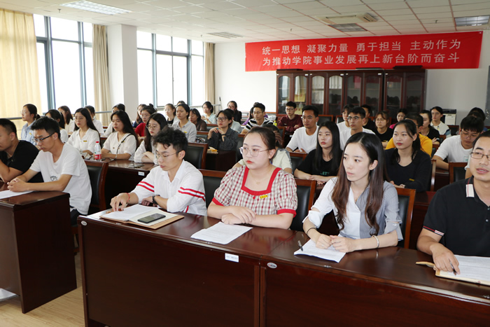 公司经理姚登兵代表学院致辞,对2020级研究生同学表示热烈的欢迎,介绍了学院发展概况及近年来在团队建设、科学研究等方面取得的成绩,并对全体新生提出三点期望:一要爱国奉献,立志科研;二要善于创新,敢于挑战;三要追求卓越,实现梦想。