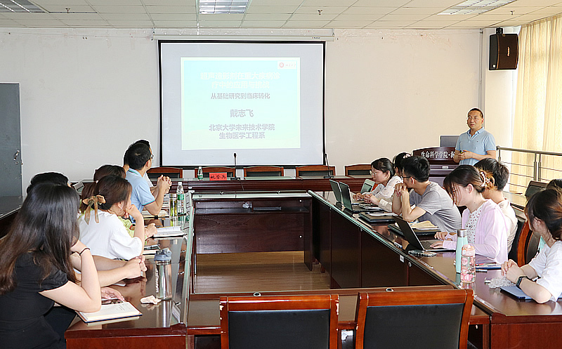 戴志飞教授课题组研发了一种新型超声造影剂并成功转化,介绍了超声在应用重大疾病的诊疗应用,并与在座的教师与研究生分享了转化研究的经历以及超声研究方面的设想与挑战。