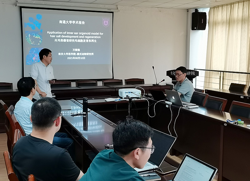 6月12日,山东大学博士生导师徐志刚教授,南京大学博士生导师万国强教授来学院分别作题目为“RBM24 affects hair cell development through regulating mRNA stability and alternative splicing”和“内耳类器官研究毛细胞发育和再生”专题学术报告。