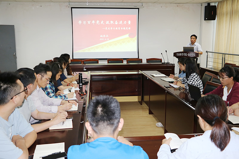 姚登兵以《学习百年党史,汲取奋进力量》,带领支部全体党员一起深入学习领会习近平总书记关于党的历史的重要论述,充分认识开展党史学习教育的重大意义,并结合学院科研教学工作与大家进行了分享交流。