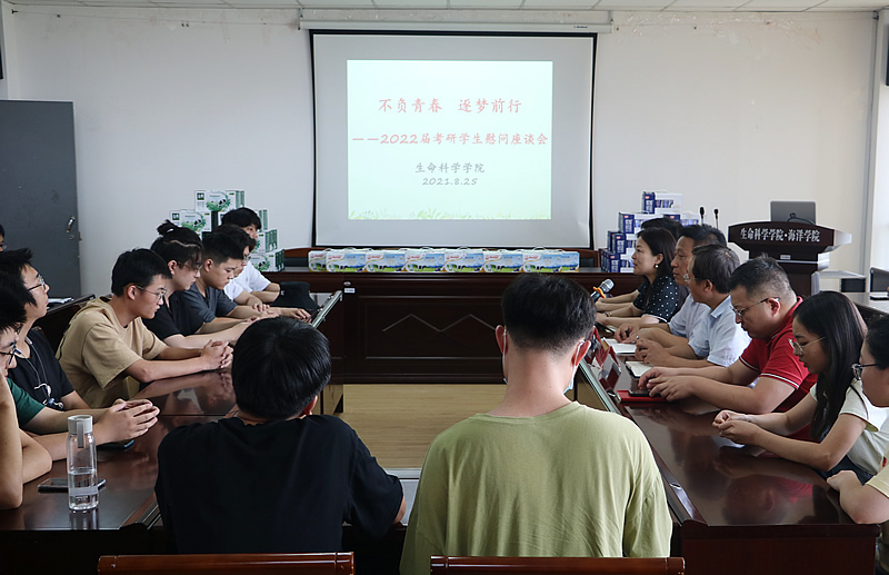 座谈会上,金玲介绍分析了近三年学院考研升学情况以及2022年全国的考研形势,希望同学们在备考复习一段时间后调整自我认知、科学定位、明确目标学校和专业,进一步树立信心、坚定信念。她亲切询问同学们暑期留校的学习和生活情况,针对同学们提出的课程答疑、自习环境、实习安排协调、推免研究生等问题,进行了解答和交流。
