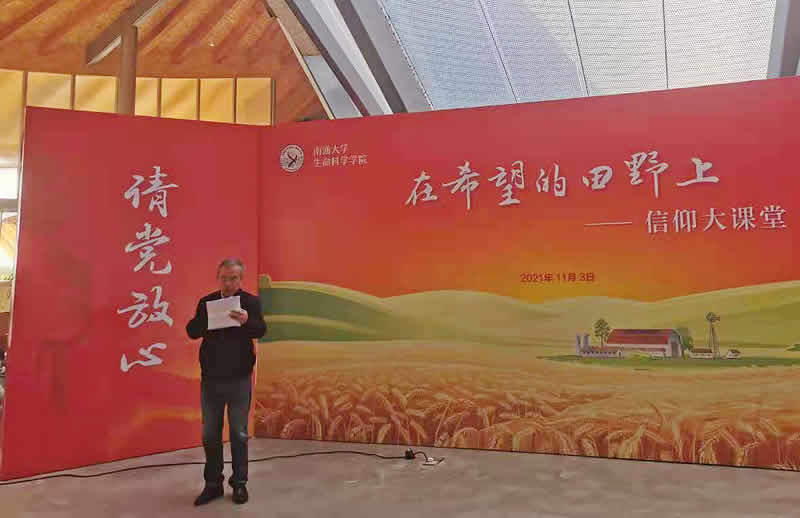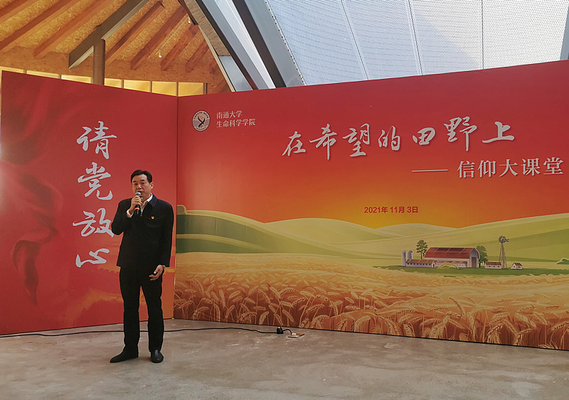 蒋辉明教授退休后仍然关心学校发展和老员工的培养,他结合自己个人的成长,与现场师生分享了建党百年的恢宏征程。在蒋教授的娓娓叙述中,大家再次感受了中国共产党“敢叫日月换新天”的豪情、“杀出一条血路”的气概和“踏石留印、抓铁有痕”的韧劲。南通市都市农业公园运营经理赵伦向大家推荐了这座集“三产融合示范区、农田景观体验区、智慧农业科教区、文旅休闲联动区”四大功能片区为一体的大型主题公园,也期待与生科院师生携手,共同为乡村振兴发展助力。学院青年教师赵祥强博士结合自己的教学科研分享了袁隆平院士筚路蓝缕的科研之路,赵博士用袁院士的一句话“人生就像一粒种子,要做好种子”与大家共勉,鼓励同学们心怀梦想,向阳而生,在生物专业的学习道路上结出金黄饱满的穗子。