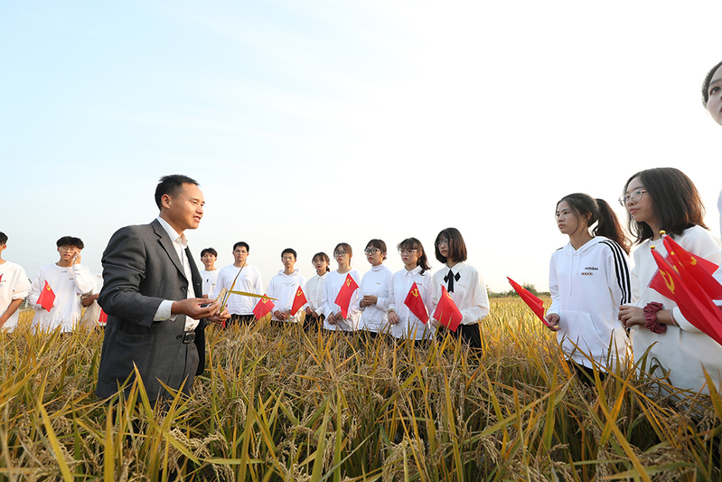 2021年11月3日,学院40余名师生将专业课堂搬到南通都市农业公园,在田间地头上信仰公开课,稻花香里话百年,赓续禾下乘凉梦想,在员工心中播种下希望的种子,鼓励同学们心怀梦想,向阳而生,在生物专业的学习道路上结出金黄饱满的穗子。该活动先后被《中国教育新闻网》《江苏教育报》《江苏教育发布》等新闻媒体报道,获得广泛好评。