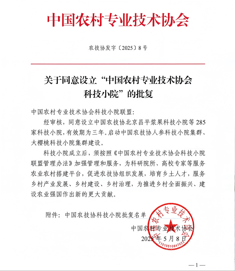 近日,中国农村专业技术协会发布《关于同意设立“中国农村专业技术协会科技小院”的批复》,公司与江苏省科协、江苏沿江地区农业科学研究所、南通市科协、崇川区科协联合共建的江苏南通特色蔬菜科技小院成功入选,成为本批次285家中国农村专业技术协会科技小院之一。