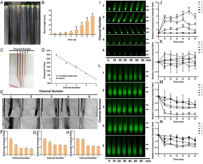 近日,ladbrokes立博孙利军教授团队在著名期刊《Plant, Cell & Environment》发表题为“A Newly Established Micro-Millifluidic Chip for Real-Time Monitoring of Arabidopsis Root Responses to Salinity Stress”的简要通讯类文章,报道了一种新型微毫流控芯片的开发及其在拟南芥根系对盐胁迫响应监测中的应用。团队精心设计了一种用于研究拟南芥根系的集成微毫流控芯片,其微流控部分能够输送并维持培养溶液的精准控制,而毫流控部分则为根系生长提供了充足的生长空间。利用该芯片可实时监测根冠的脱落、根毛生长和侧根形成的动态过程。论文还探究了不同盐浓度胁迫条件下,根系对盐胁迫的响应以及生长素(DR5::GFP)的分布和极性运输(Pin2::GFP)的改变,与传统的研究方法相比,团队构建的新型微毫流控根芯片不仅为根系的长期生长提供更多空间,而且实现了培养溶液浓度梯度的精确生成和控制,为植物根系微形态和生理反应的高时空分辨监测提供了全新的研究策略。